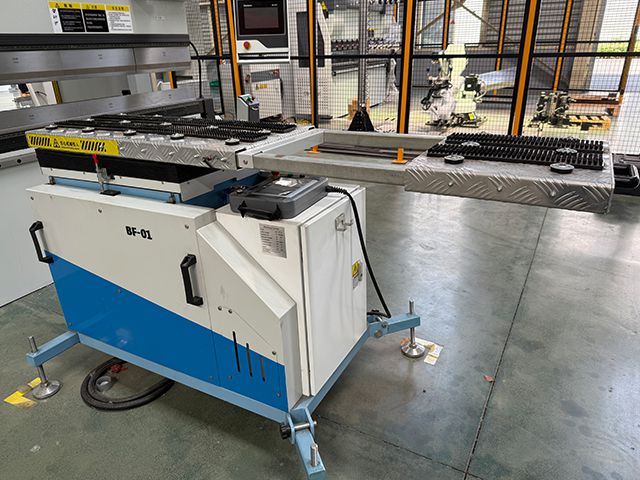 Bir ön tabaka takipçisi destek sistemi ile donatılmış hidrolik pres freni, uzun, ince tabakaları daha kolay ve hassasiyetle bükmek için özel olarak tasarlanmıştır. Bu sistem, makinenin önüne yerleştirilmiş, bükme hattının yüksekliği veya alt kalıbın yüksekliği ile hizalanmış iki destek kolundan oluşur. CNC sistemi tarafından kontrol edilen destekler, bükme işlemi sırasında tabakanın hareketini aktif olarak takip ederek, doğruluğu sağlamak ve operatör çabalarını azaltmak için sürekli destek sağlar.